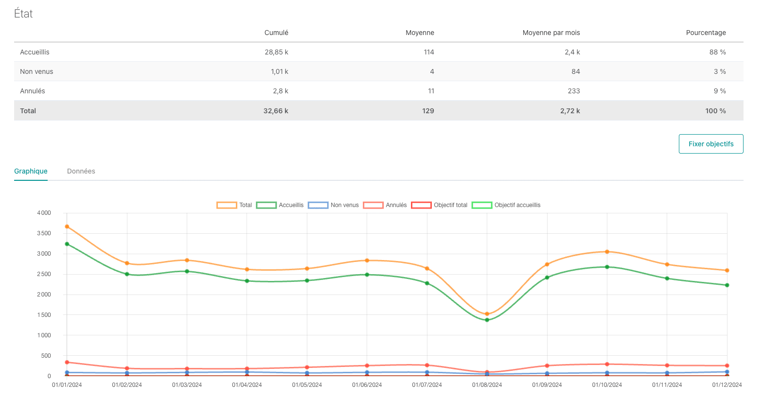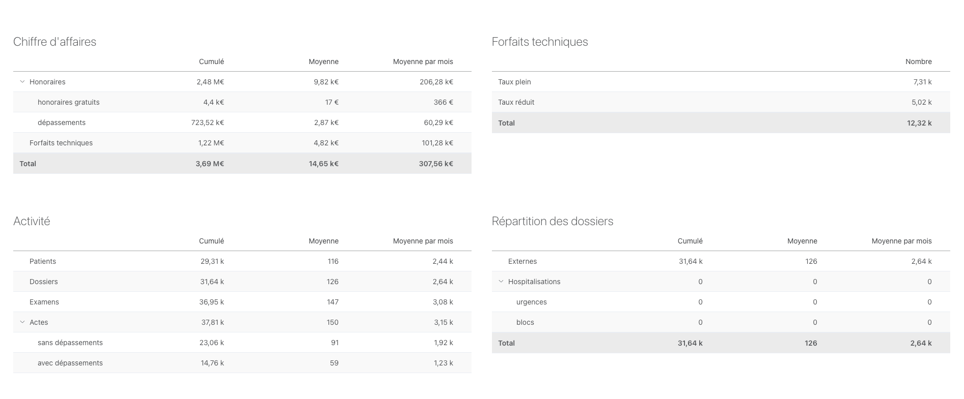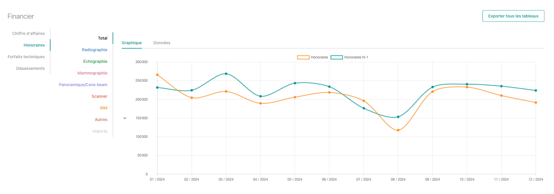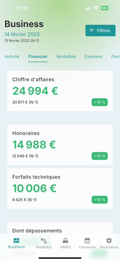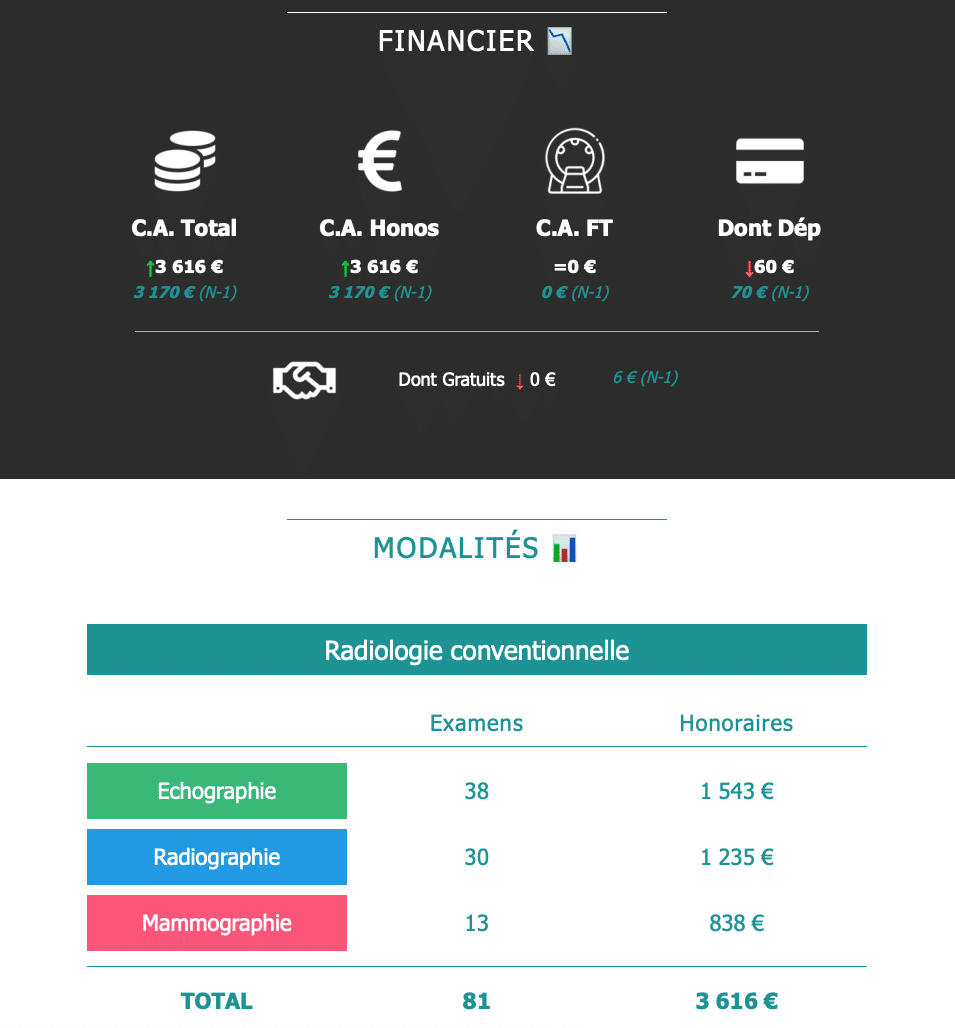 - Suivez l’évolution du nombre de RDV, d’examens, du chiffre d’affaires, de vos forfaits techniques pour affiner votre stratégie.