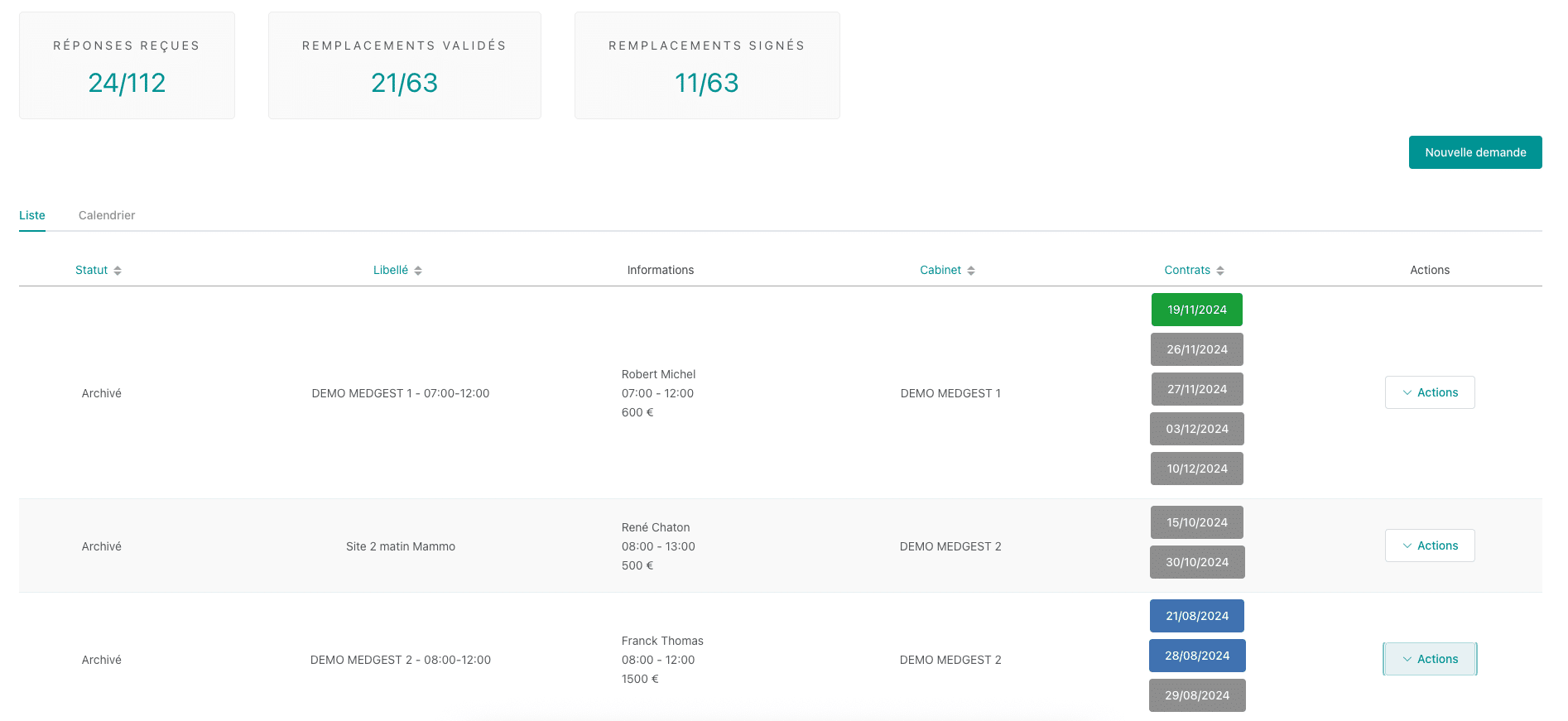 - Envoyez vos demandes de remplacement à un ou plusieurs médecins remplaçants, ou à l’ensemble de votre pool de remplaçants, en quelques clics.